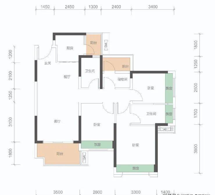 墅质级4+1房、南北双阳台(主阳台超7米)