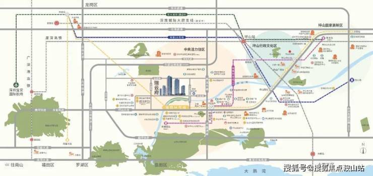 另外项目北侧约1.3公里处规划在建有东部过境高速出入口,全线长31.68公里,设计时速80公里,从坪山金钱坳立交出发,终至罗湖莲塘口岸。