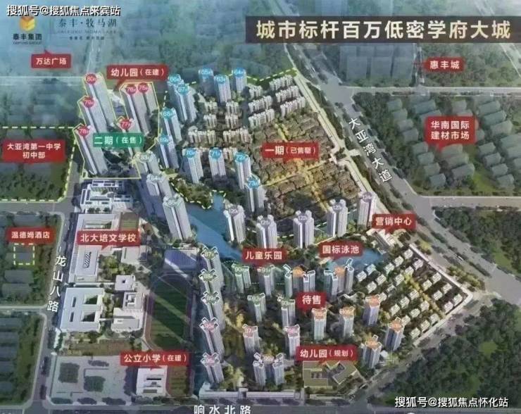 大亚湾【泰丰牧马湖】一期已完美收官,二期占地约4.5万㎡,总计容建筑面积约15.46万㎡,由2栋高层和4栋超高层组成,拥一线湖景资源,距万达广场导航距离约404米,