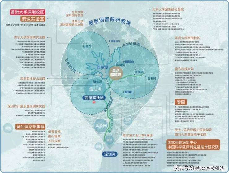 首先是西丽湖国际科教城,其发展定位为世界一流大学城、国家基础科学和应用基础研究中心,粤港澳大湾区创新“智核”,可以说是整个大湾区的创新源头,汇聚着深圳最高端、最具创造能力的人群。