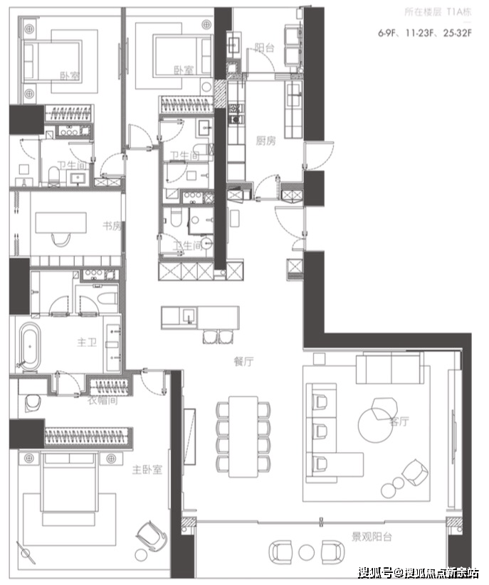 户型:232-280㎡3房,320-400㎡4房,468-610㎡5-6房