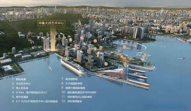 蛇口联动前海、深圳湾,构成三大千亿级经济中心格局。蛇口国际海洋城战略,太子湾作为主要承载区,对标美国哈德逊城市广场,约170万㎡滨海都会区大器已成