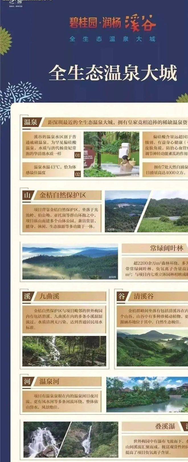 碧桂园润杨溪谷位于惠州惠阳区沙田镇金桔自然保护区旁,项目群山环绕,森林郁郁葱葱,拥有4万亩原生态山林的温泉资源,项目总占地约3000亩,一期开发1200亩,开发的产品有温泉入户美墅、山居洋房、温泉公寓等。这是深圳边上生活品质配套的生态温泉大城。
