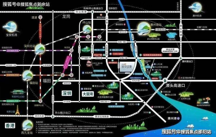 约1公里大亚湾政务中心;对面西区一小科创园分校、附近规建西区五小、项目自带一所幼儿园;约3公里内即三甲医院-惠亚医院、华美达酒店等完善生活配套