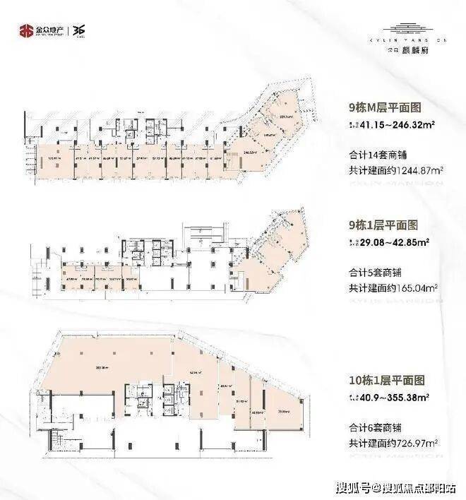 9栋M层为14套商铺,共计1244.87 ㎡;其中01-02-03铺为挑高铺; 整体为2层铺;
