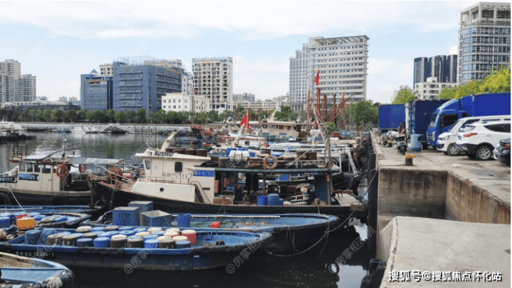 项目原是渔人码头旧改项目而来,时至当日,码头还散乱地停留着不少渔船,与周边齐整的建筑形成鲜明反差。