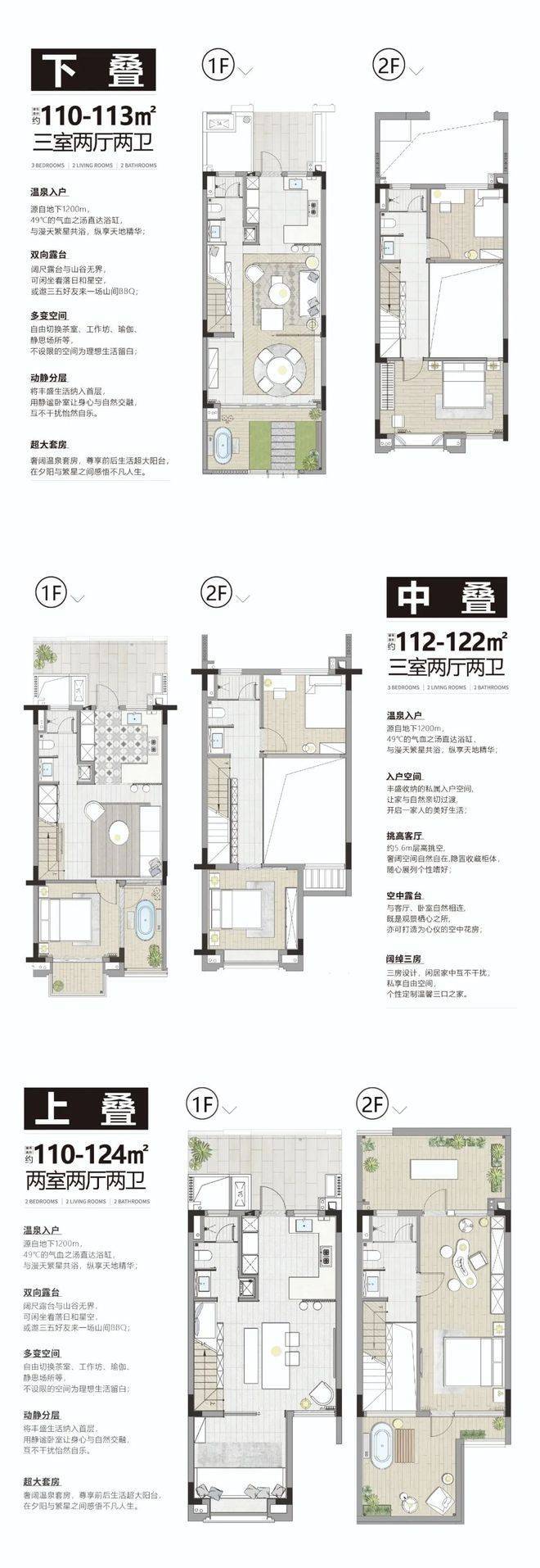 ❶建筑面积109-121㎡,总价136万-168万精装修叠墅(不含家私)温泉入户