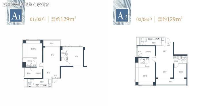 1栋一单元A1、A2户型:面积约为129㎡