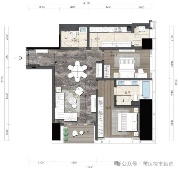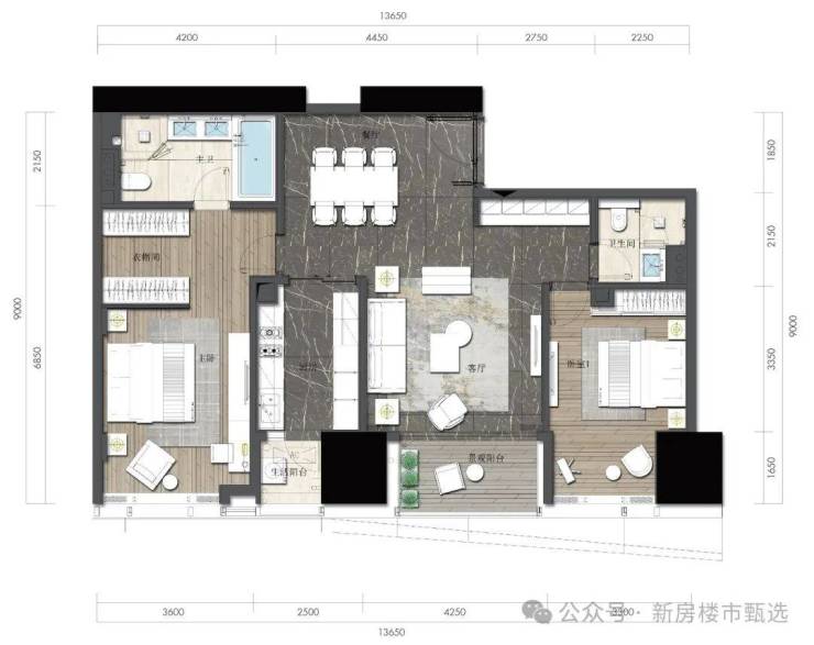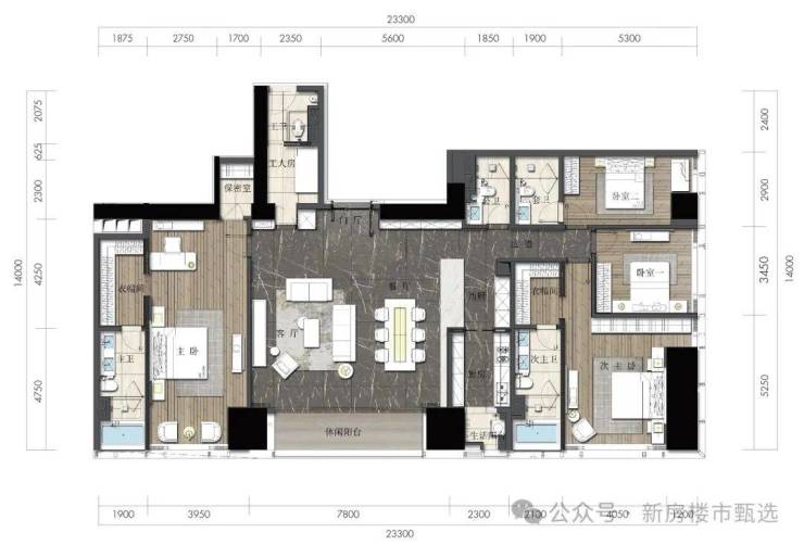 约164㎡2房2厅2卫(独立入户玄关,动静分离,约33㎡豪华主卧,承载品质生活)