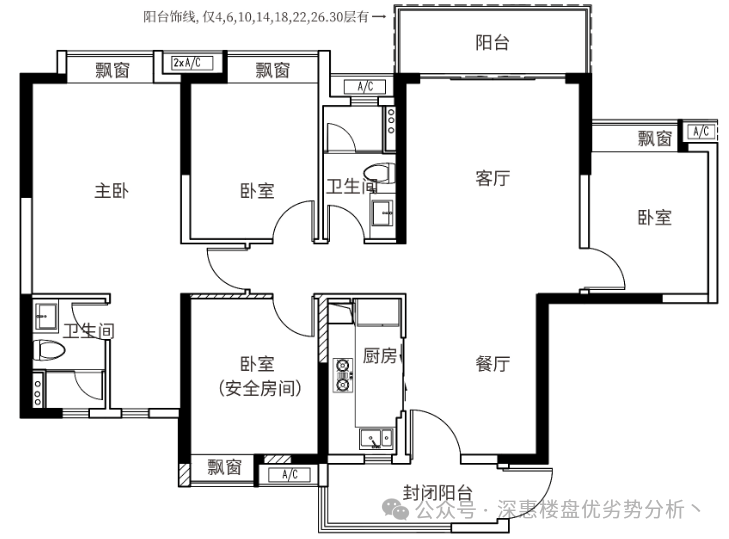 建面约140㎡四房两厅两卫