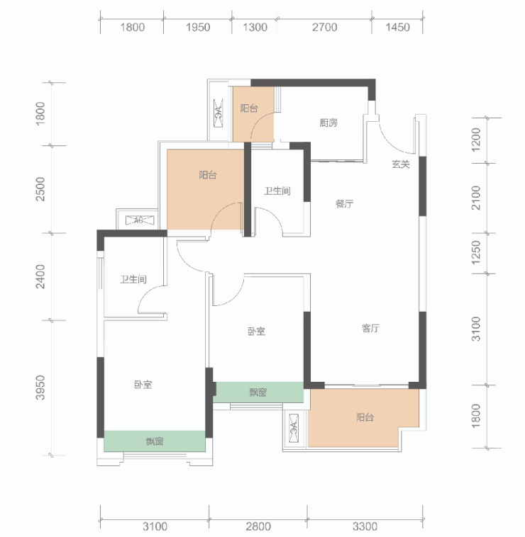 B户型: 100㎡(3+1房,2卫)同级面积稀缺3+1房、稀缺三开间朝南,总价约108万。