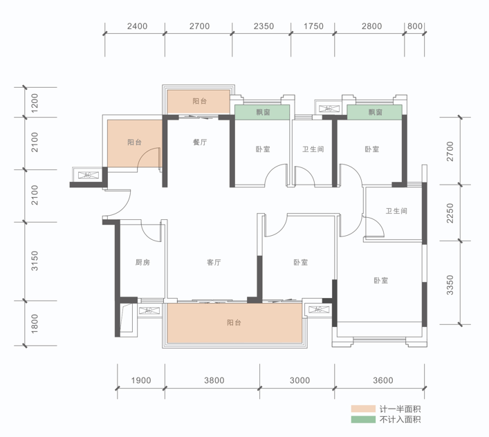 C户型] 121㎡ 4+1房 2卫,总价约127万
