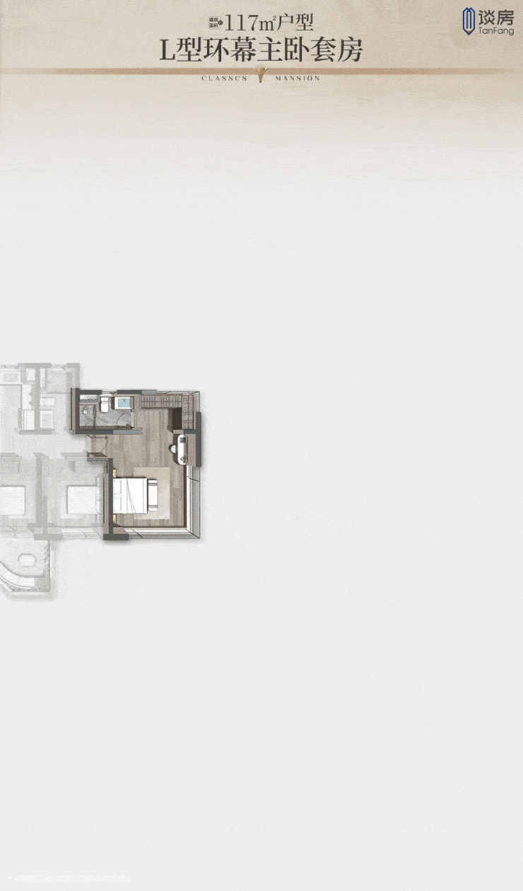 主人私享空间实现三面采光×南北对流×L型环幕,且坐拥更长进深,有充足空间规划专属衣帽间,舒适度、功能性双管齐下。