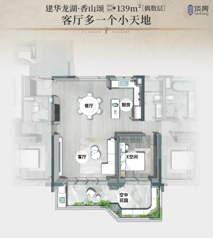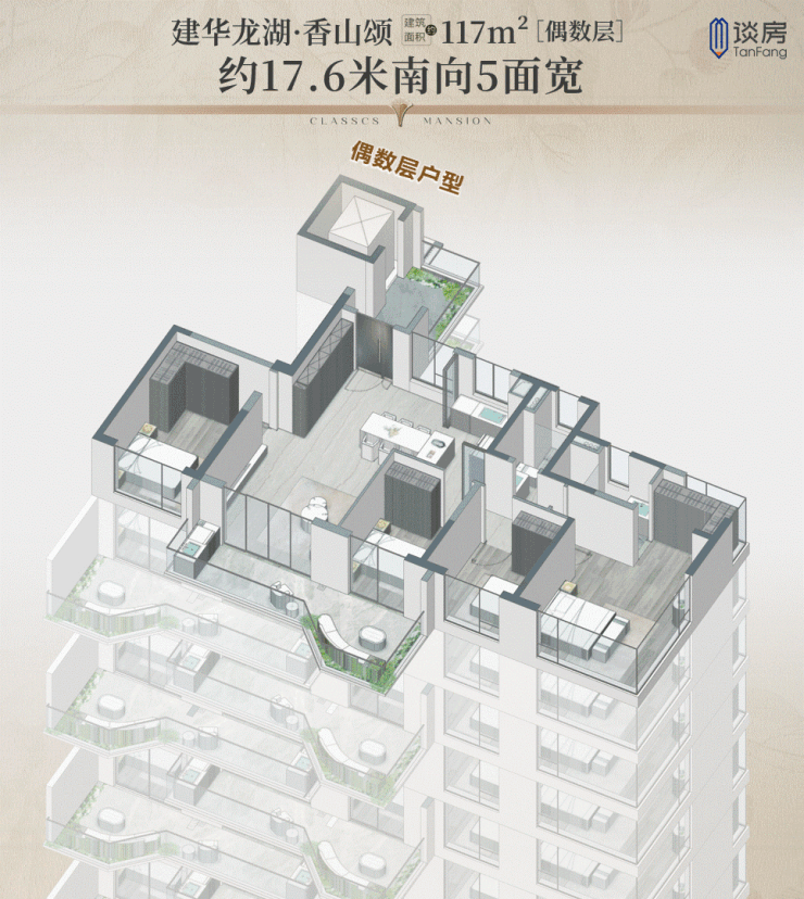 最勾人的必数四代宅创新户型,其不仅拥有超高实用率,而且标配大阳台和空中花园。