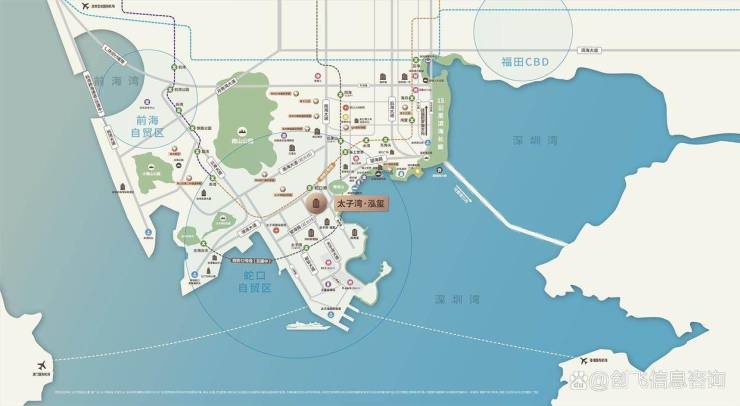 太子湾·泓玺占据蛇口半岛南端约1.4公里黄金海岸线,与香港元朗隔海相望,15分钟可达前海合作区,30分钟贯通深圳湾口岸与福田CBD。片区作为深圳"一带一路"国际航运中心,汇聚了蛇口邮轮母港、太子湾国际医院(规划)、K11 ECOAST艺术购物中心等顶级配套。2025年深中通道通车后,将进一步强化其湾区交通枢纽地位。根据最新规划,周边还将建设海上世界文化中心二期,形成比肩悉尼达令港的滨海文化带。