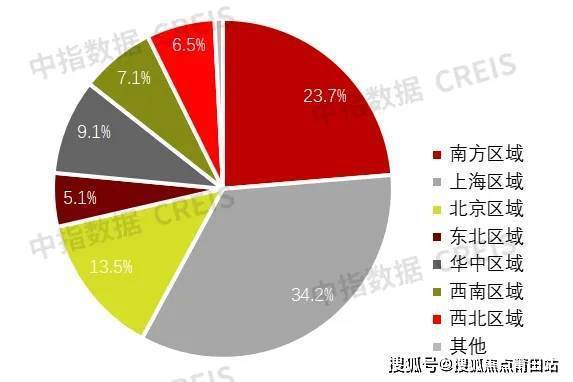 从各区域销售金额贡献占比来看,南方区域、上海区域和北京区域销售占比最高,均超过10%,分别为23.7%、34.2%和13.5%,东北区域占比5.1%,华中区域占比9.1%,西南区域7.1%,西北区域6.5%。