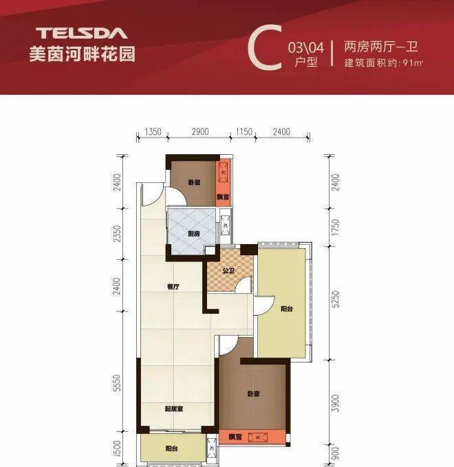 亮点一:户型方正实用,双阳台南北通透,通风采光俱佳