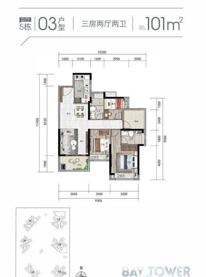 (2)142㎡三室两厅三卫(G83户型):全明格局,主卧带独立卫生间,空间布局合理。