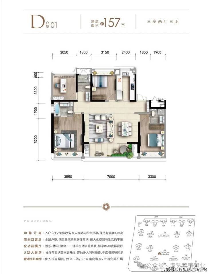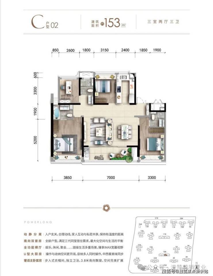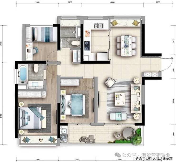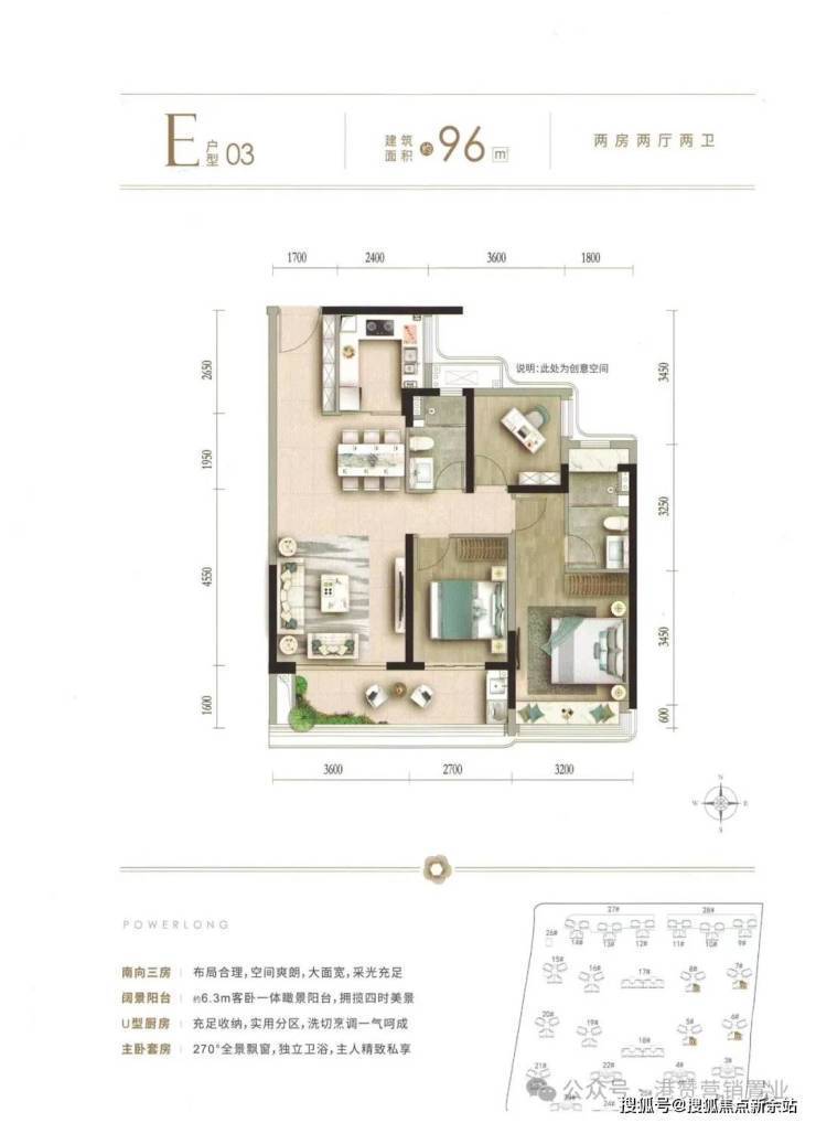 主推产品①:96㎡三房二卫