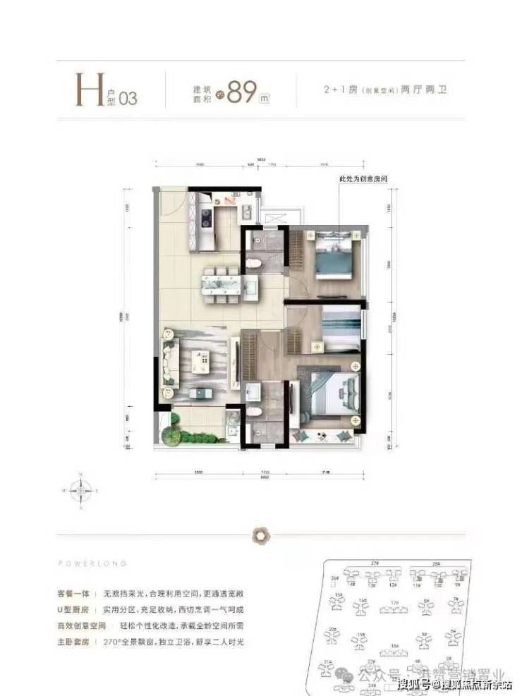 主推产品:89平方米2+1房两厅两卫