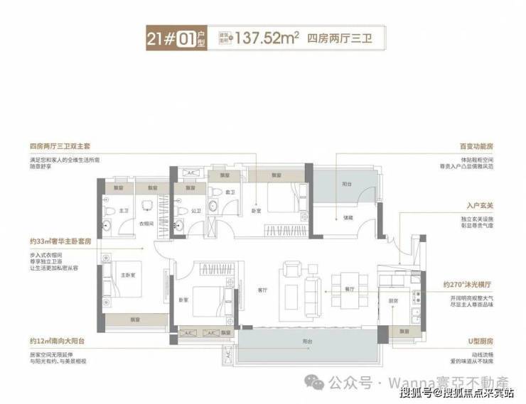 01户型: 137㎡ 3+1房3卫(双套间)