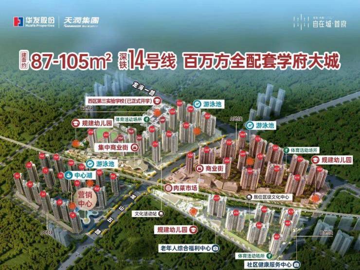 【华发自在城花园】深铁14号线 160万方全配套大城 家门口自带8万平综合商业 目送式教育63班九年一贯制中小学交房:二期现房 现房 现房