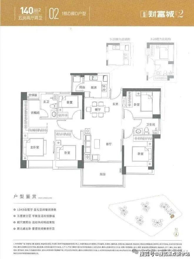 建面约75-140平的3-5房户型,做到了户户双阳台设计,既满足了不同家庭的居住需求,又兼顾了实用性。