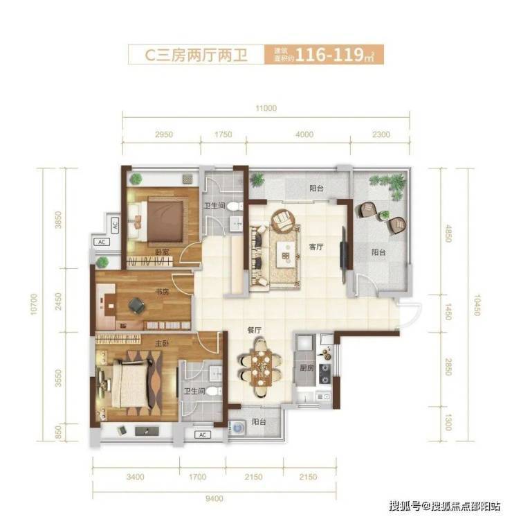 必买理由布局精妙彰显便利体贴;客厅餐厅贯通,空间灵动切换;卧室一览江景,彰显尊贵;阔景阳台,沉浸风景巨幕之中;私密主卧套房,体验舒适自在空间。 C户型:116-119㎡三房两厅两卫