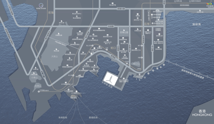 华侨城新玺地处前海蛇口自贸区,毗邻香港,拥有得天独厚的地理位置。项目周边交通网络发达,通过望海路、南海大道、后海大道等城市干道及地铁2号线东角头站,与周边区域建立便捷的外部交通联系。此外,项目还临近太子湾邮轮母港,可快速辐射深圳国际机场、香港国际机场等城市核心交通要塞。