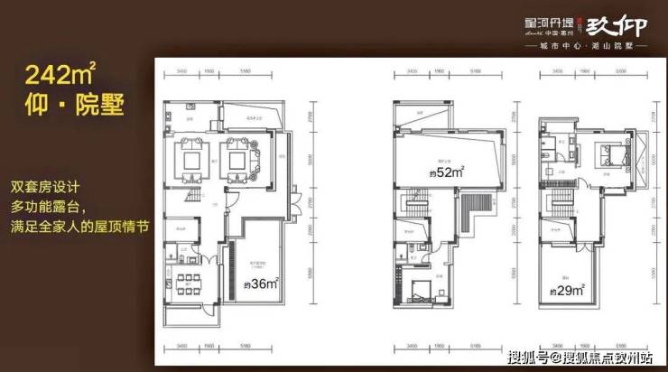 242双拼合院:位置在湖心岛,产品稀缺共28套,下沉式庭院隐私性好,使用面积780平,买三层享五层,五层全采光设计