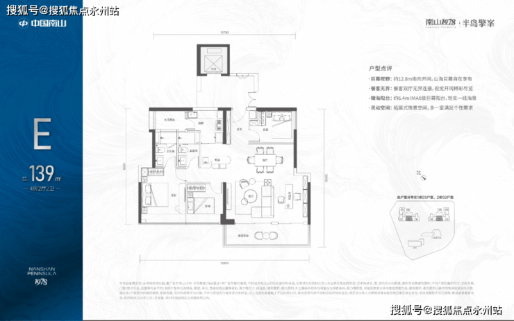 139㎡-4房2厅2卫,折后总价1120-1152万/套,单价8.08-8.31万/㎡。