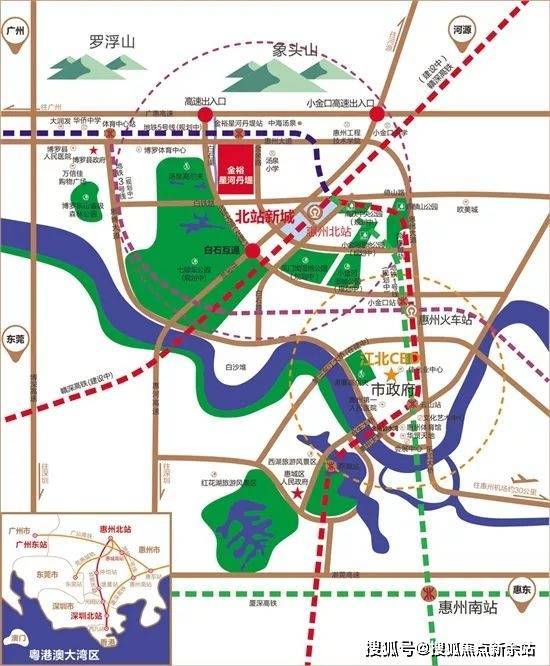 在轨道交通方面,项目距离新规划的惠州高铁北站距离仅1.5公里,届时开通后可通过赣深高铁/广汕高铁/深汕高铁/莞惠城轨/深惠城轨连通粤港澳大湾区各城市,而赣深高铁惠州高铁北站,三站即可到达深圳,未来轻松实现30分钟到深圳,一小时到香港。