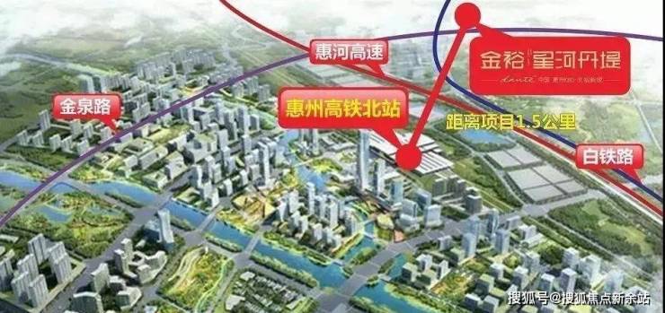 金裕星河丹堤位于惠城大江北北站新城片区的重要位置,总建面约180万㎡,目前北站新城没有比这更大的社区。