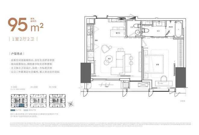 88-95㎡单间/一房:适合投资或单身人士。95㎡户型配备270°弧形落地窗,视觉空间感显著提升。