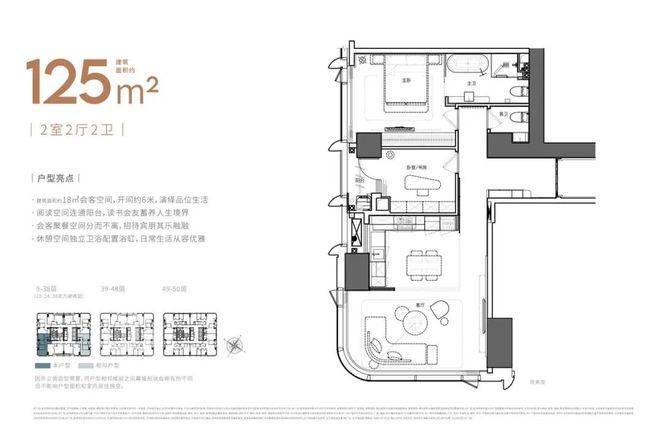 115-125㎡两房:采用LDK一体化设计,主卧带衣帽间或独立卫浴,适合两口或三口之家。
