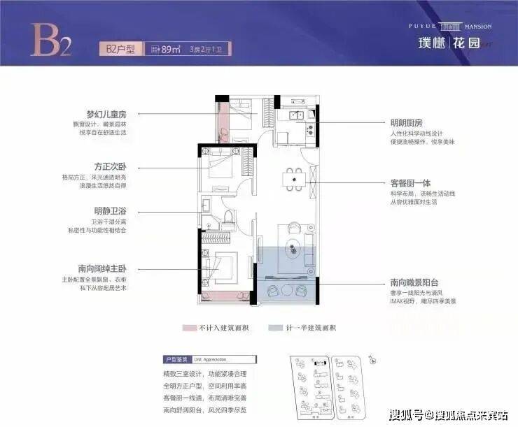 2. 板式全明阳光三居,南向舒阔阳台,风光四季尽览