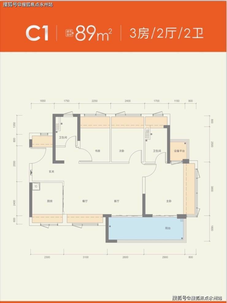 设备平台规划:每户标配约2㎡设备平台,可放置洗衣机、烘干机等家电,释放室内空间,89㎡户型主卧额外配备设备平台,满足高端家庭“双阳台”需求。