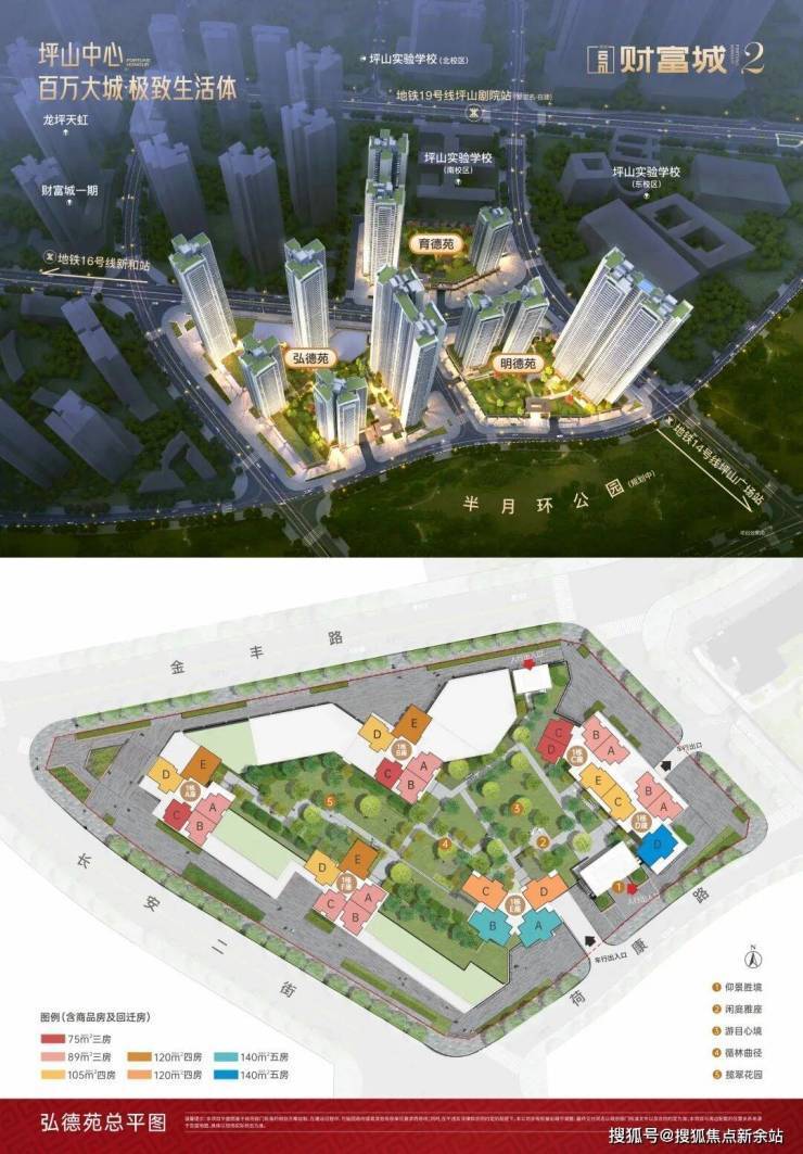 ·财富城二期,占据大城版图C位、南向俯瞰半月环公园,匠心迭代矩作,诚意敬献。二期首发组团【财富城弘德苑】,以自然为底蕴打造“森境艺术园林”,融合园林、休闲、运动、共享等空间场景,家楼下尽享都会活力人生。
