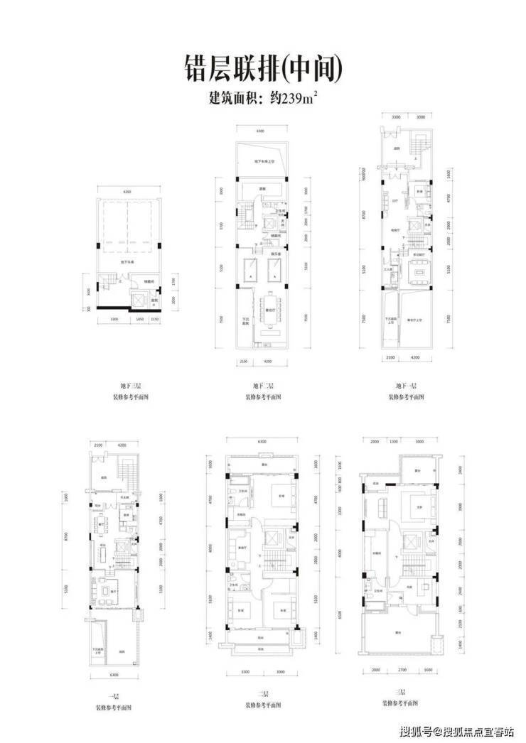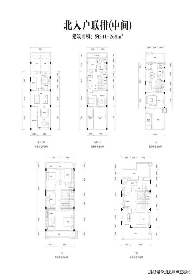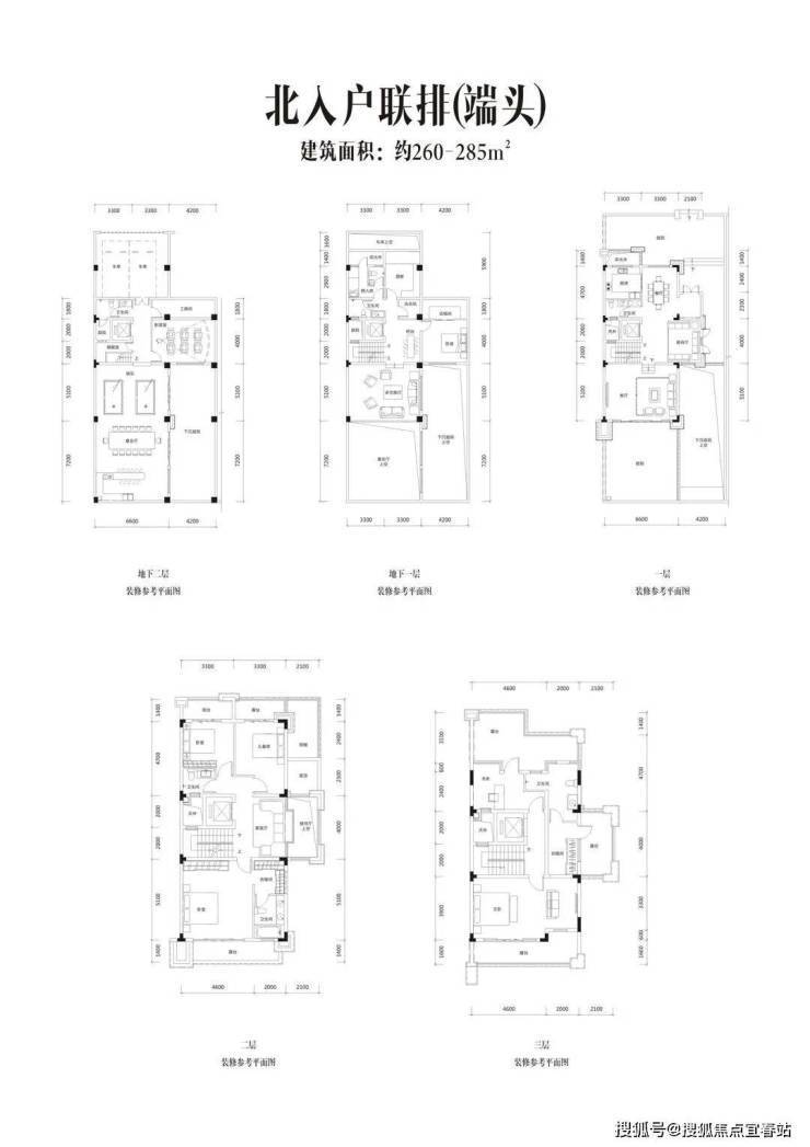 8、【在售产品】约251㎡端头/238㎡中间错层联排;约256-287㎡端头/约239-268㎡中间南北入户联排
