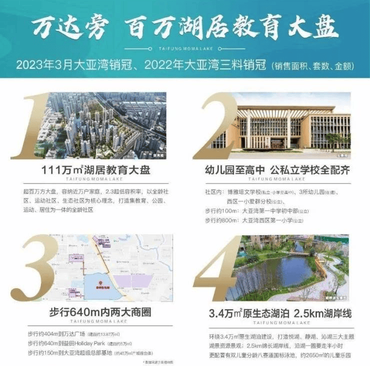 项目荣获2022年大亚湾片区销量第一,2022年惠州市销量第三,2023年3月大亚湾片区销量第一;2月份大亚湾片区销量第三,1月份大亚湾片区销量第二;