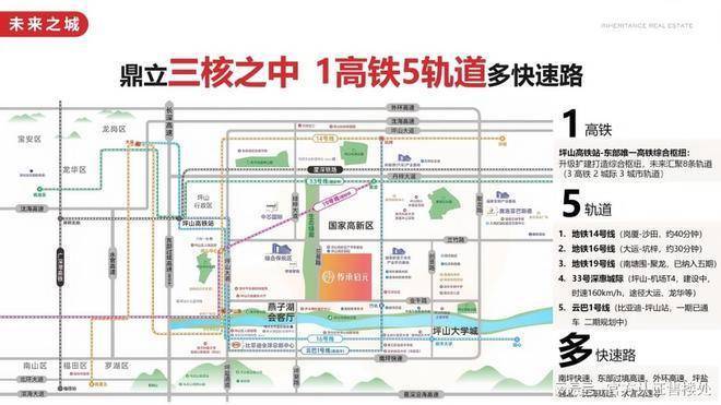 快速路网:南坪快速、沈海高速、外环高速等多条高速环绕,15分钟可达坪山高铁站,30分钟直达盐田港,1小时覆盖深圳全。