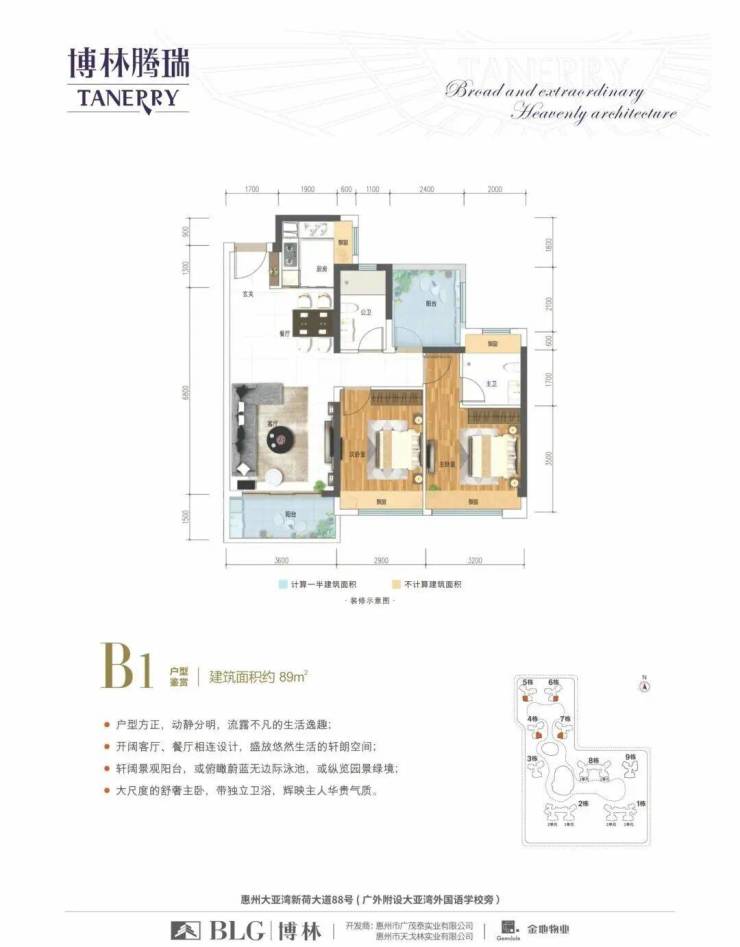 大亚湾西区,博林腾瑞于2023年11月9日取证入市,本次推出4栋5栋6栋1单元,共384套房源,面积有77㎡的3房2厅1卫,87㎡的3房2厅2卫户型,89㎡的通透3房2厅2卫户型,109㎡的4房2厅2卫户型,毛坯现房送装修,送全屋家私家电、窗帘都包!