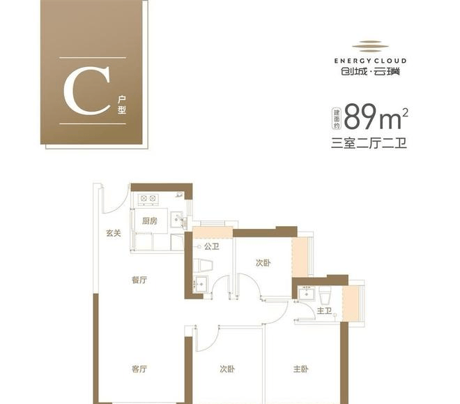 格局设计:阔绰竖厅格局,客餐厅开间约3.9米,空间感比89㎡更舒展;双阳台+双卫配置,兼顾实用与舒适;主卧为套房设计,带独立卫浴与飘窗,尊享感更强。