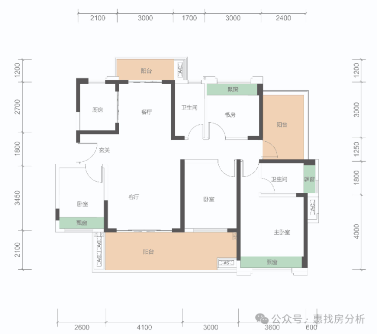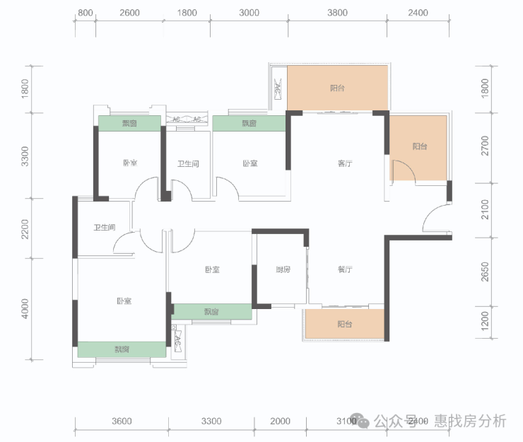 墅质级4+1房、南北双阳台(主阳台超7米)