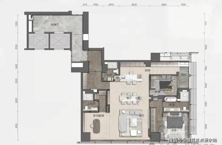 天幕藏品,总建面约8.6万㎡,主打建面约125-280㎡天幕藏品,分布在楼层的中区、高区、超高区,分别命名为风邸(6-24F)、兴邸(27-37F)和颂邸(40-52F)。