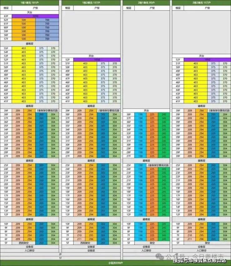 超高区58F起(200米以上)是约500-700㎡顶级大平层;