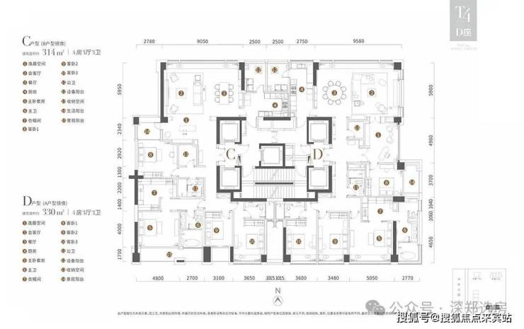 【T7-01户型鉴赏】约393㎡四房三厅六卫