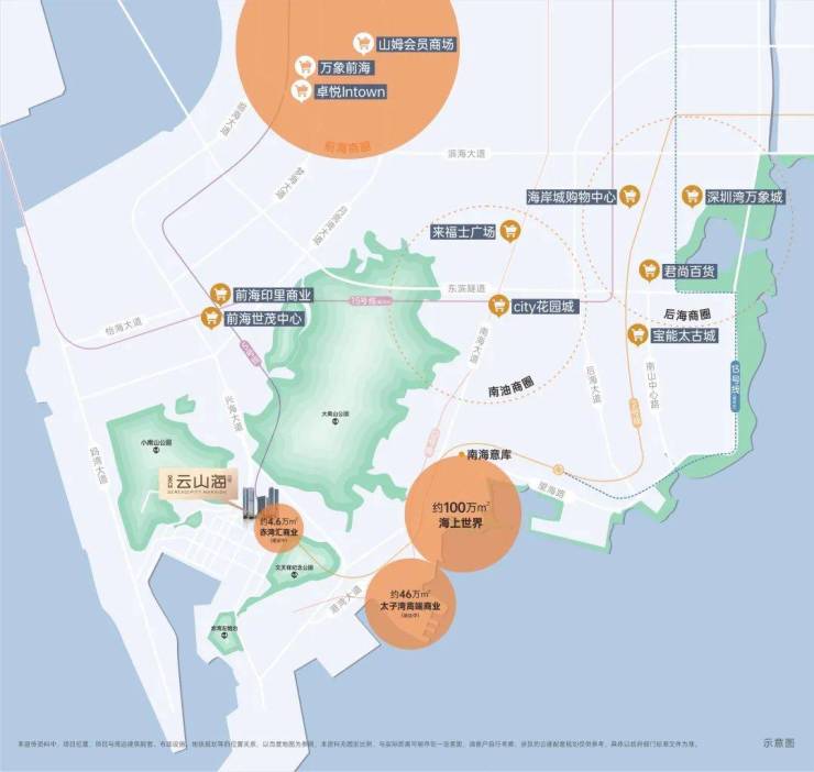 📍直线距离约6公里范围内分布有花园城、海岸城、宝能太古城、来福士广场等多个大型shoppingmall