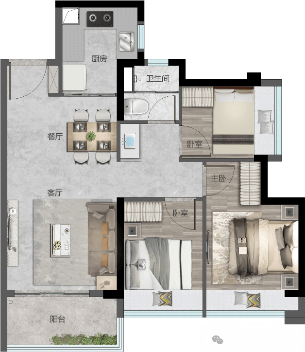 👇【约75㎡实用三房】全三房格局 三开间超南! 面积小更容易上车!户型亮点:U型厨房+全维飘窗+超高得房率