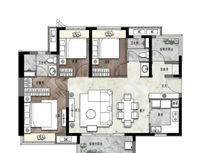 建面约117㎡ 三房两厅两卫